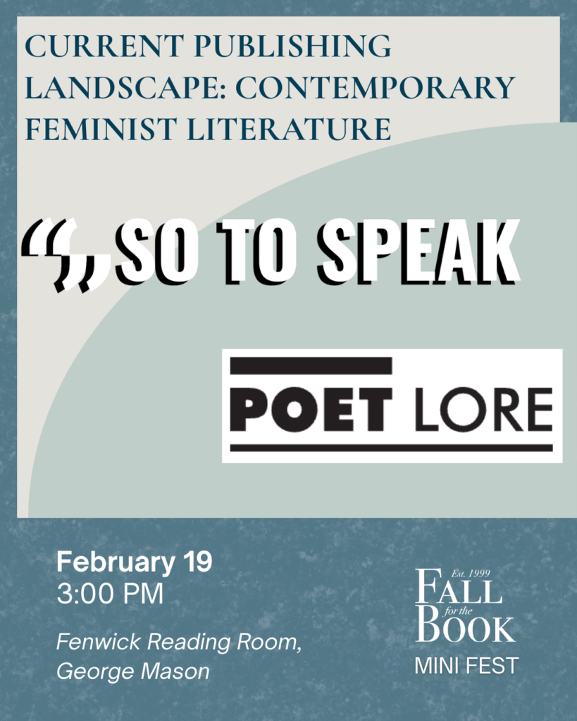 Have you ever been curious how the behind the scenes editorial conversations go at literary magazines? Are you looking to submit your own work and would love a fresh perspective on the process? The editors of Mason’s own So to Speak answer your pressing questions during this conversation. So to Speak is a feminist journal of language and art focused on elevating non-traditional creative voices founded in 1993.